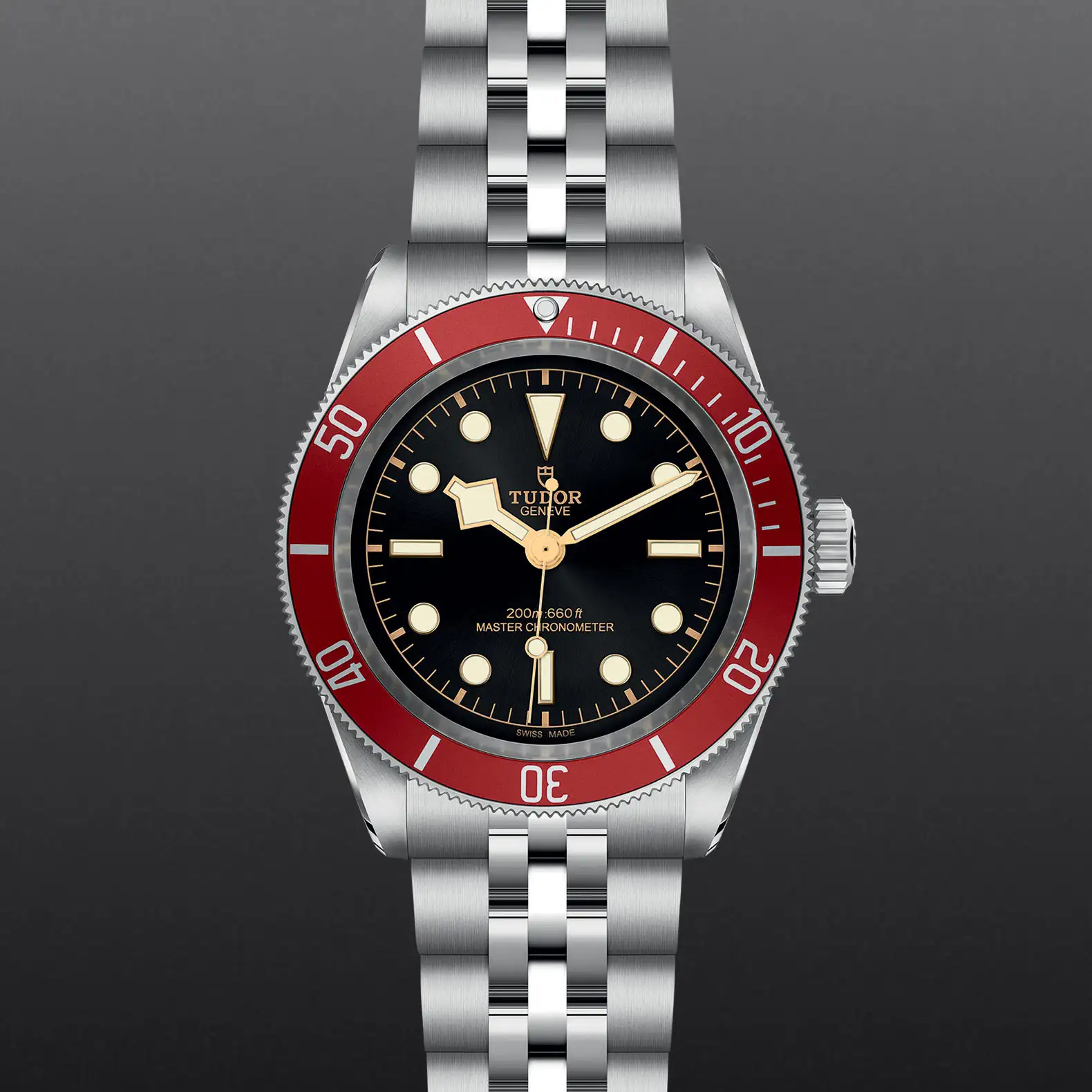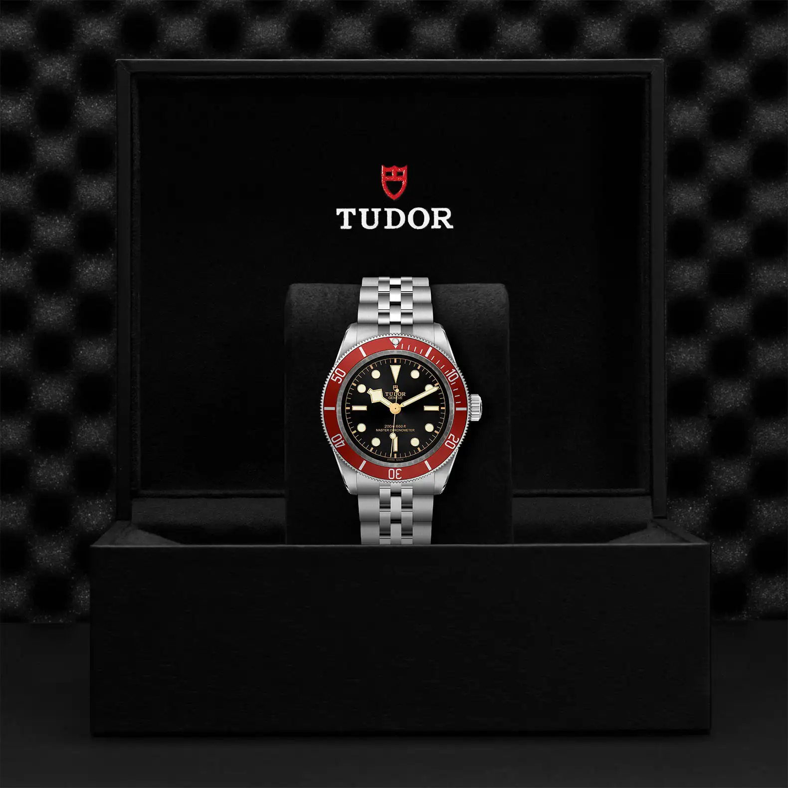 The Black Bay celebrates 60 years of diving watches with extraordinary heritage. The iconic model inherits the general lines, as well as the domed dial and crystal from the first TUDOR diving watches. It borrows the characteristic angular hands, known as snowflake, from the watches delivered in large quantities to the French National Navy in the 1970s.