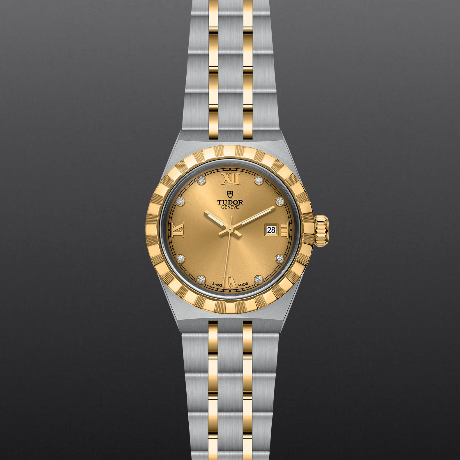 旋入式上链錶冠,饰以帝舵表标志;精钢覆有0.1毫米18K黄金薄层