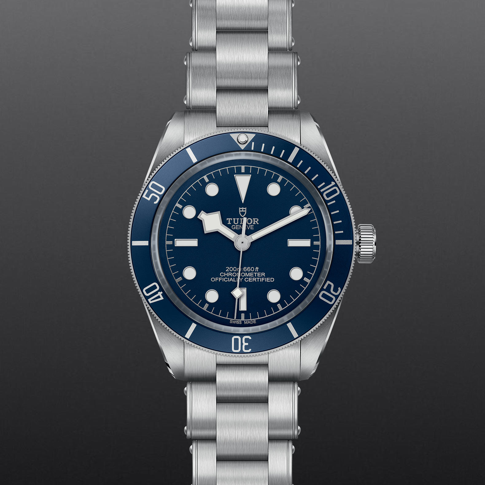 鋼旋入式上鏈錶冠,飾以浮雕帝舵表玫瑰標誌,配圓紋磨砂鋼上鏈錶冠軸