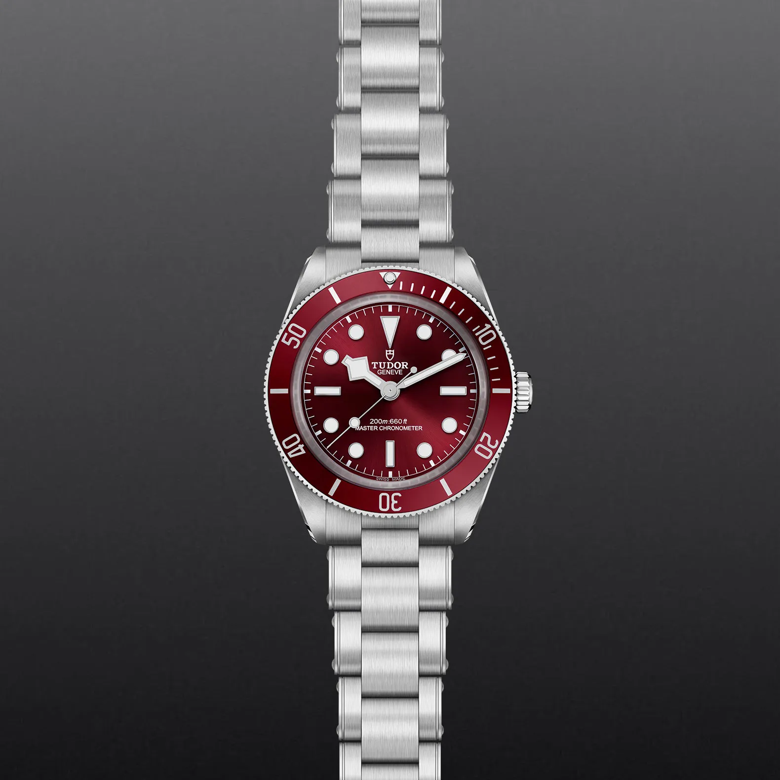 1958年,帝舵表推出第一代帝舵潛水錶,其中型號為7924,亦稱為「大錶冠」。Black Bay 58以此潛水錶推出的年份命名,沿襲其眾多美學特色。今年,一款通過瑞士聯邦計量科學研究院(METAS)大師天文台精密時計認證的酒紅色腕錶加入Black Bay 58系列。這是此錶款首次搭配五鏈節不銹鋼錶帶。
