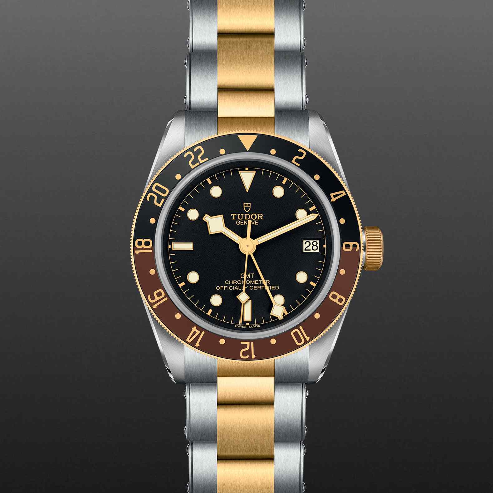 旋入式上鏈錶冠,飾以浮雕帝舵表玫瑰標誌;精鋼覆有0.1毫米18K黃金薄層