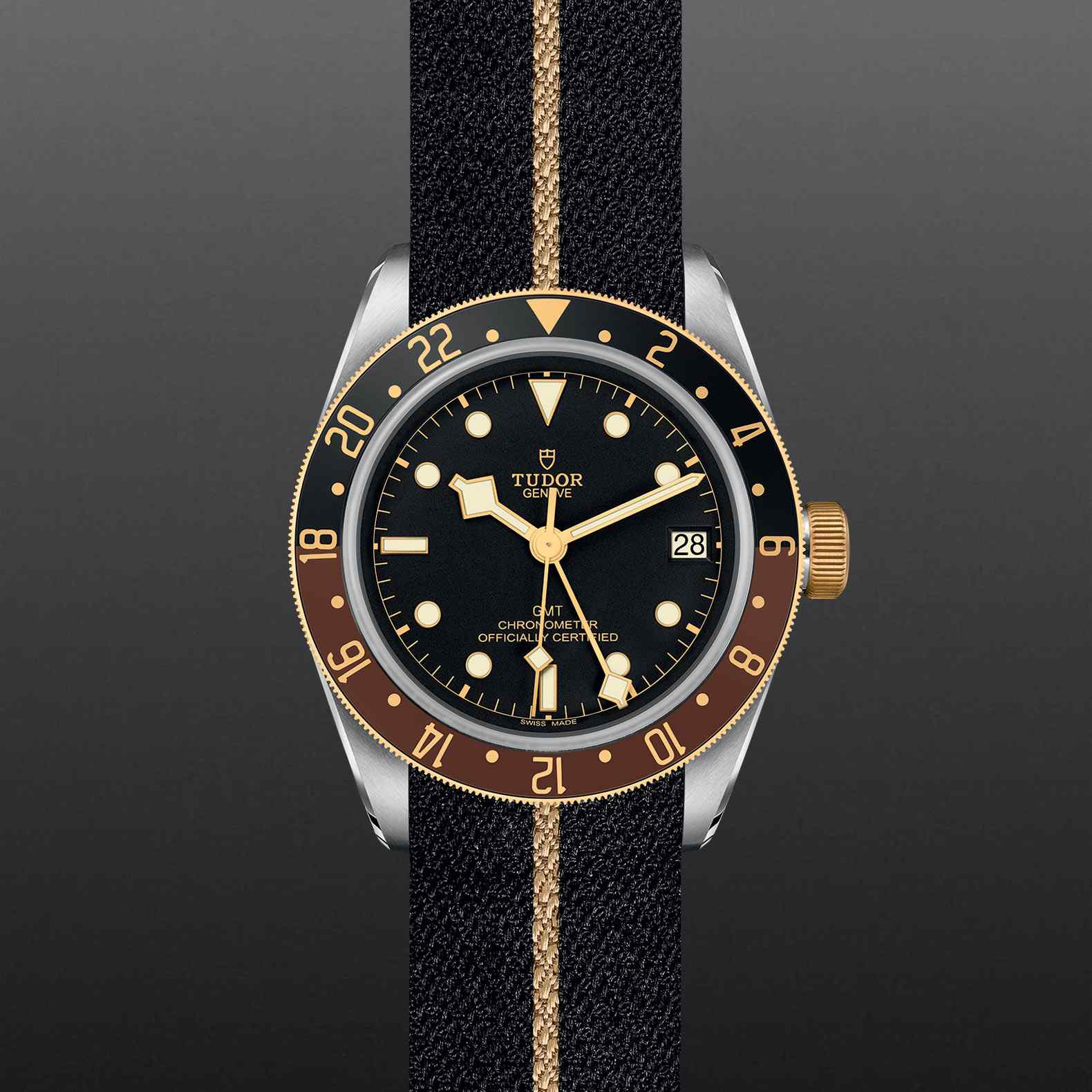 Black Bay GMT擴展Black Bay系列,引入極為實用的複雜功能──「GMT」,即多時區功能。Black Bay GMT配備搶眼的旋轉外圈,沿用Black Bay系列的深藍色和酒紅色配搭,啞面Black Bay GMT同樣向GMT這一傑出功能致敬。